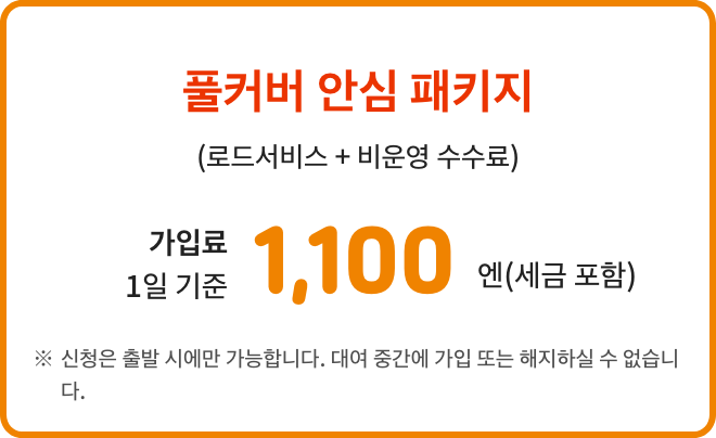 | 차량 보상1사고 한도액 | 시가액 | 50,000 円 |